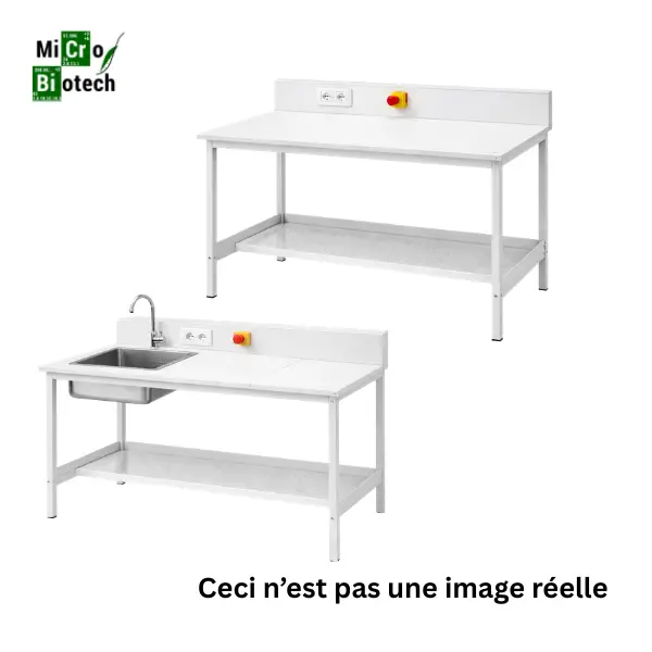 Des équipements optionnels comme robinet gaz, meuble de rangement en MDF ou bac en résine avec robinet et siphon permettent d’adapter parfaitement cette paillasse aux besoins spécifiques de chaque laboratoire.