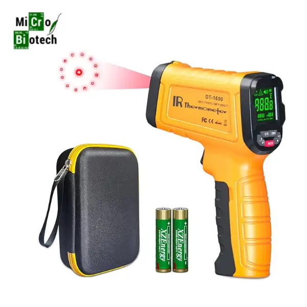 Le Thermomètre infrarouge offre une mesure rapide et fiable grâce à sa large plage de température de -50 °C à 1400 °C, idéale pour les analyses, le contrôle industriel et les applications techniques exigeantes. Son rapport distance/point de 50:1 permet de mesurer en toute sécurité des sources très chaudes à distance, avec un résultat instantané en 0,5 seconde. Le réglage de l’émissivité de 0,10 à 0,99 et le laser à 12 points garantissent une précision optimale selon le matériau analysé. Les fonctions professionnelles, comme les alarmes de seuil haut et bas et l’affichage Max, Min et Moyenne, facilitent le suivi des températures critiques.